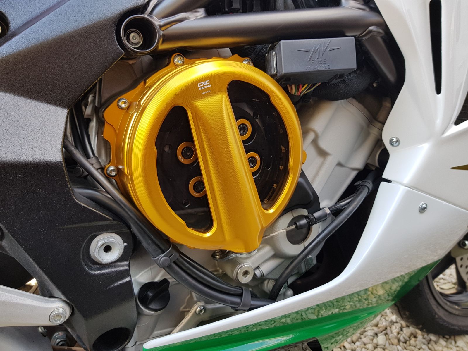 CNC RACING より、2018年より発売されました「スケルトン・クラッチカバー」です。3気筒モデルのワイヤークラッチ用、油圧クラッチ用それぞれ発売されております。クラッチカバーの色、中に見えているプレッシャープレート、スプリングリテーナーの色を組み合わせて、あなた好みに仕上げてください。(ブラック・シルバー・レッド・ゴールド)