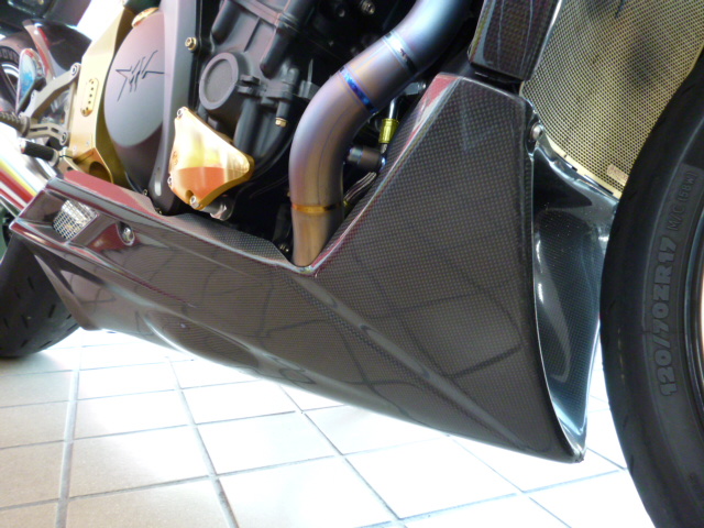 4気筒ブルターレ用カーボンアンダーカウル。レースレギュレーションを満たすオイルキャッチ構造。~2009年モデル・2010年~でフィッテイングが変わりますので、ご指定下さい。(綾織り・平織り どちらも製作出来ます。こちらもご指定下さい。)