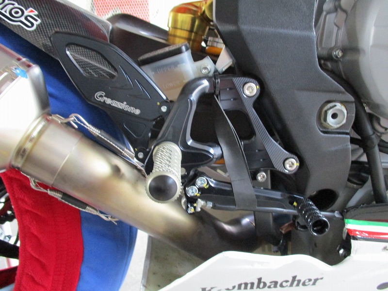 BRUTALE800/800RRに装着可能なビレット・ステップ。肉厚なラジアルマウントプレート、シャープに刻まれたローレットが、確実なホールドを可能にした。フレームアウトのチェンジロッドの為、追加部品を用意することなく、リバースチェンジも可能。